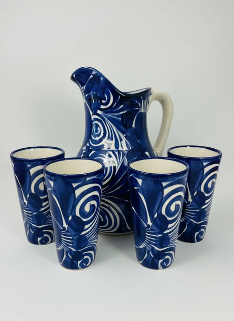 La Mexicana Terracotta Water Jug with Cups – Handcrafted Elegance from Mexico