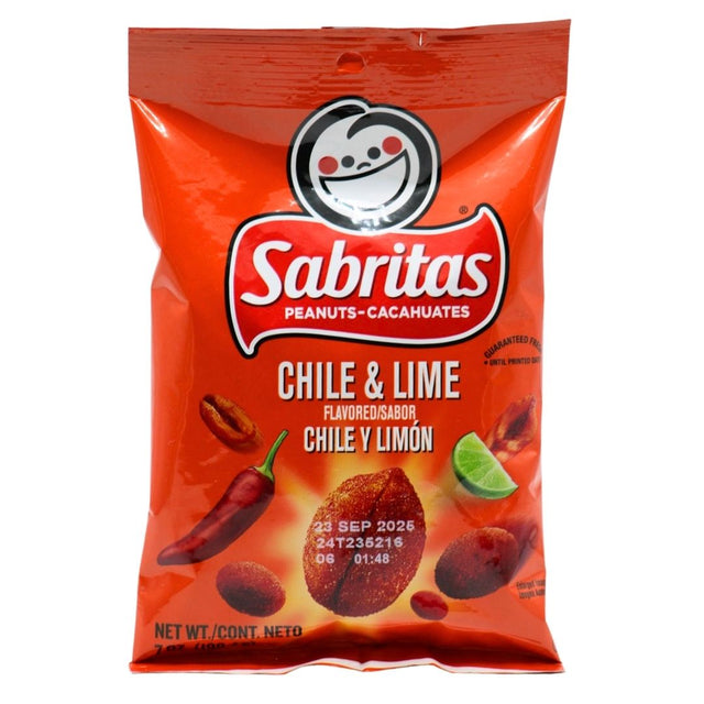 are the perfect snack when you have a craving for peanuts. One taste of these spicy and tangy peanuts will drive your taste buds wild and you'll know why they are Mexico's favorite snack. Sabritas Chile and Lime peanuts are coated with mild chili powder and lime, making them highly addictive and absolutely perfect for munching as a lone snack, serve at a party, have while watching t.v., or to have alongside a cold beer or, better yet, a margarita! You won't be able to eat just one!.