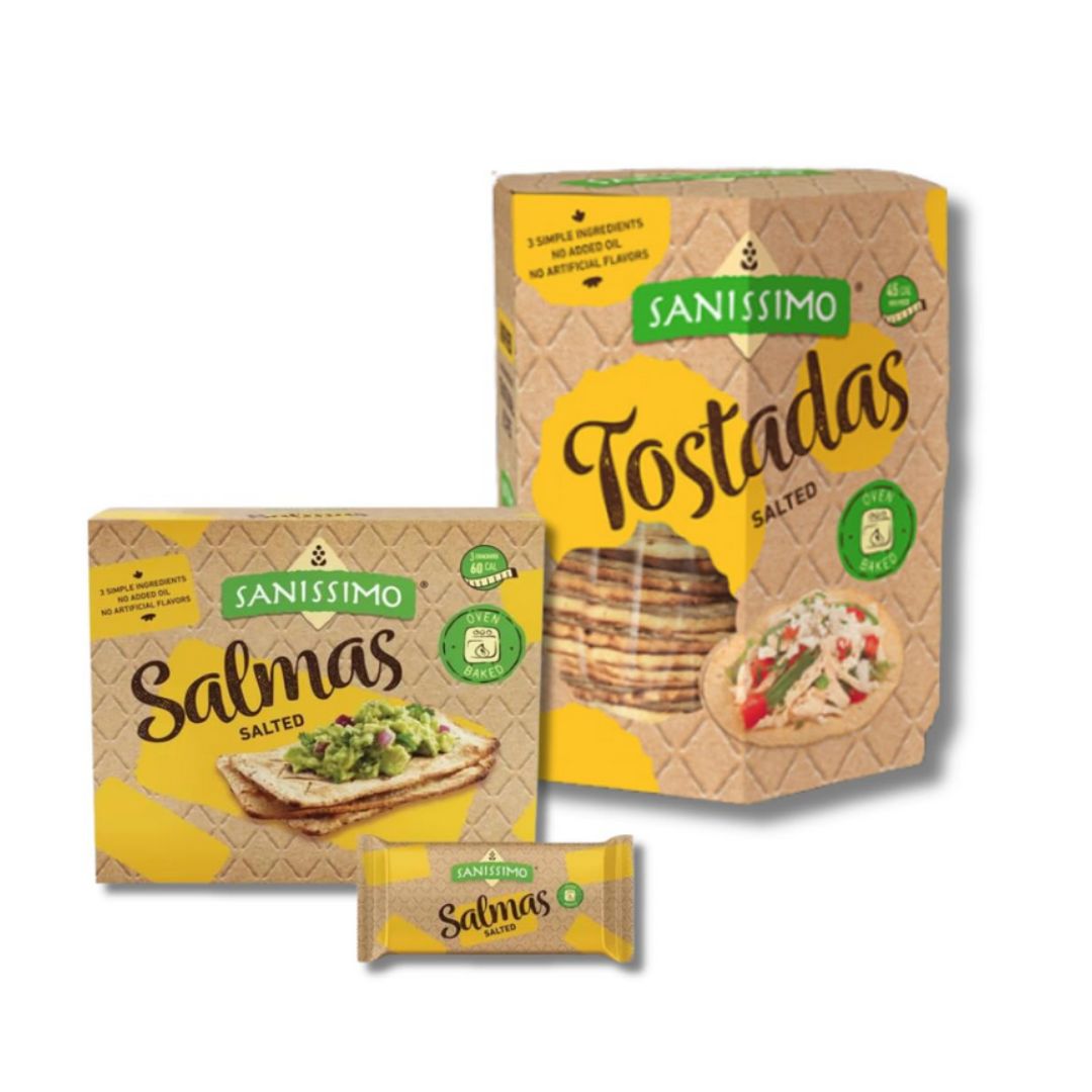 Sanissimo Oven Baked Corn Tostadas & Salmas Crackers Bundle Pack