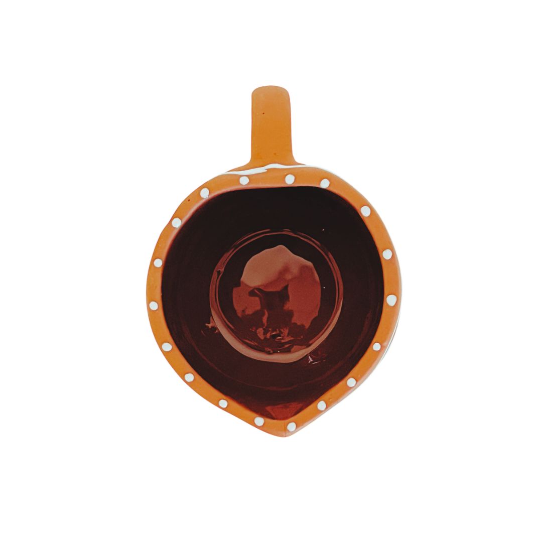 Add a touch of warmth and tradition to your table with this Heart Shape Clay Mug in Terracotta Plumeado (15 oz). Handcrafted in the classic Mexican barro style, this beautiful mug features a unique heart-shaped design and a rustic plumeado finish that highlights the natural beauty of terracotta clay.