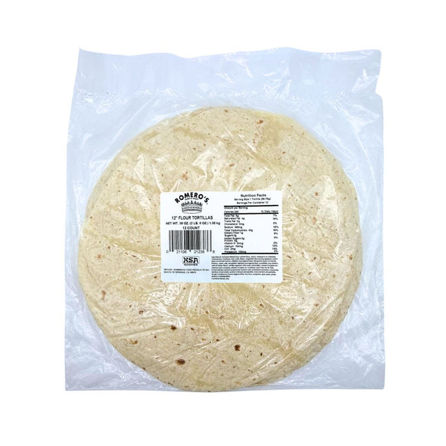 Make every burrito taste homemade with Romero’s 12-Inch Flour Tortillas — soft, flexible, and perfectly sized for big, satisfying wraps. These authentic-style tortillas deliver the flavor and texture you’d expect from fresh, homemade dough, making them ideal for burritos, quesadillas, fajitas, and more.